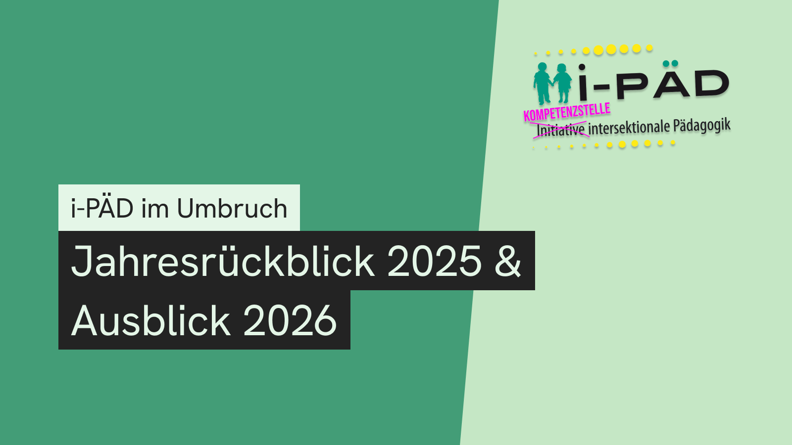 Das Projekt „i-Päd – intersektionale Pädagogik“ existiert seit August 2011. Es ist ein Projekt, das die Anerkennung der Komplexität von Identitäten in der Pädagogik fördern soll. Dabei geht es um die Identitäten von Kindern und Jugendlichen, sowie auch die Identitäten der Lehrer_innen, Erzieher_innen und aller anderen Menschen, die mit Kindern und Jugendlichen zusammenarbeiten.